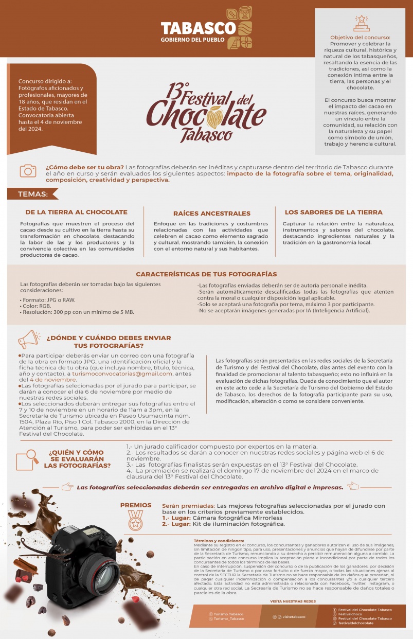 El Festival del Chocolate es la celebración de nuestra rica herencia cultural y gastronómica, donde el cacao se convierte en símbolo de tradición, historia y sabor que une a nuestro pueblo tabasqueño.