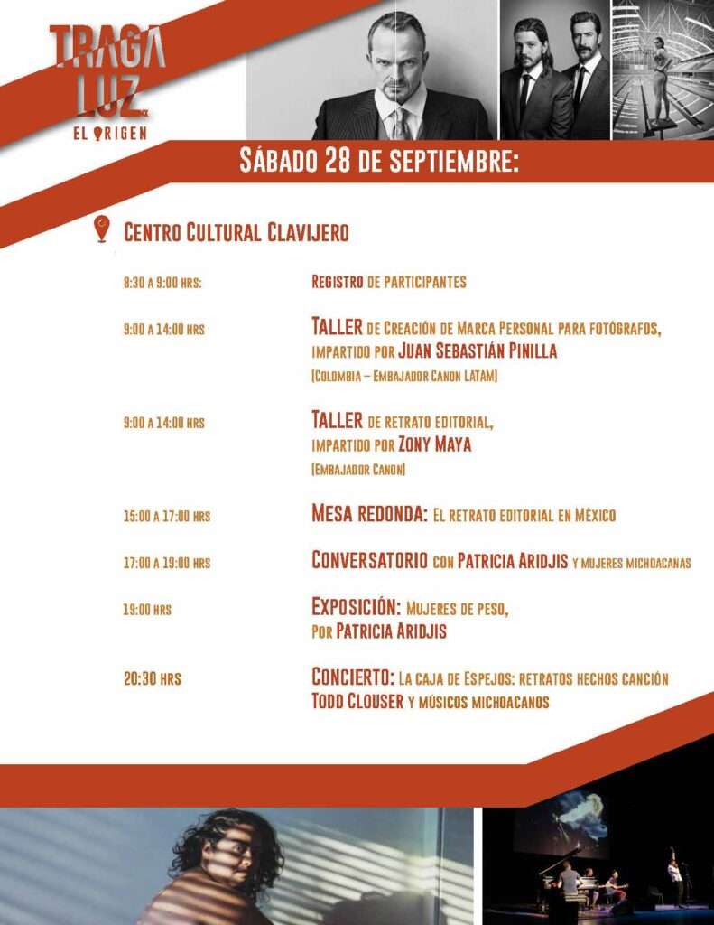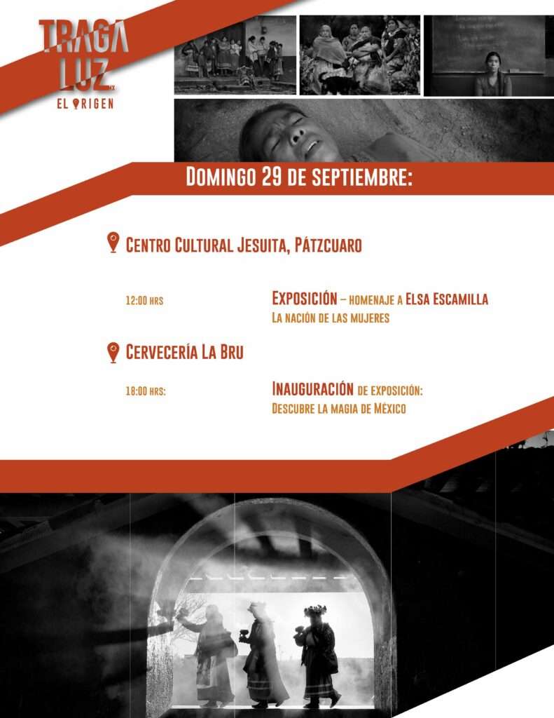 - Fotografía documental, Día de Muertos: Disfrutaremos de un retiro de 3 días, liderados por los fotógrafos Éric Sánchez y Jesús Cornejo, planificado minuciosamente. Durante estos días potenciaremos nuestras habilidades creativas, visuales y técnicas y desarrollaremos la autorreflexión crítica e informada para la creación de historias alrededor de una tradición con tanta fuerza como el Día de Muertos en Michoacán.